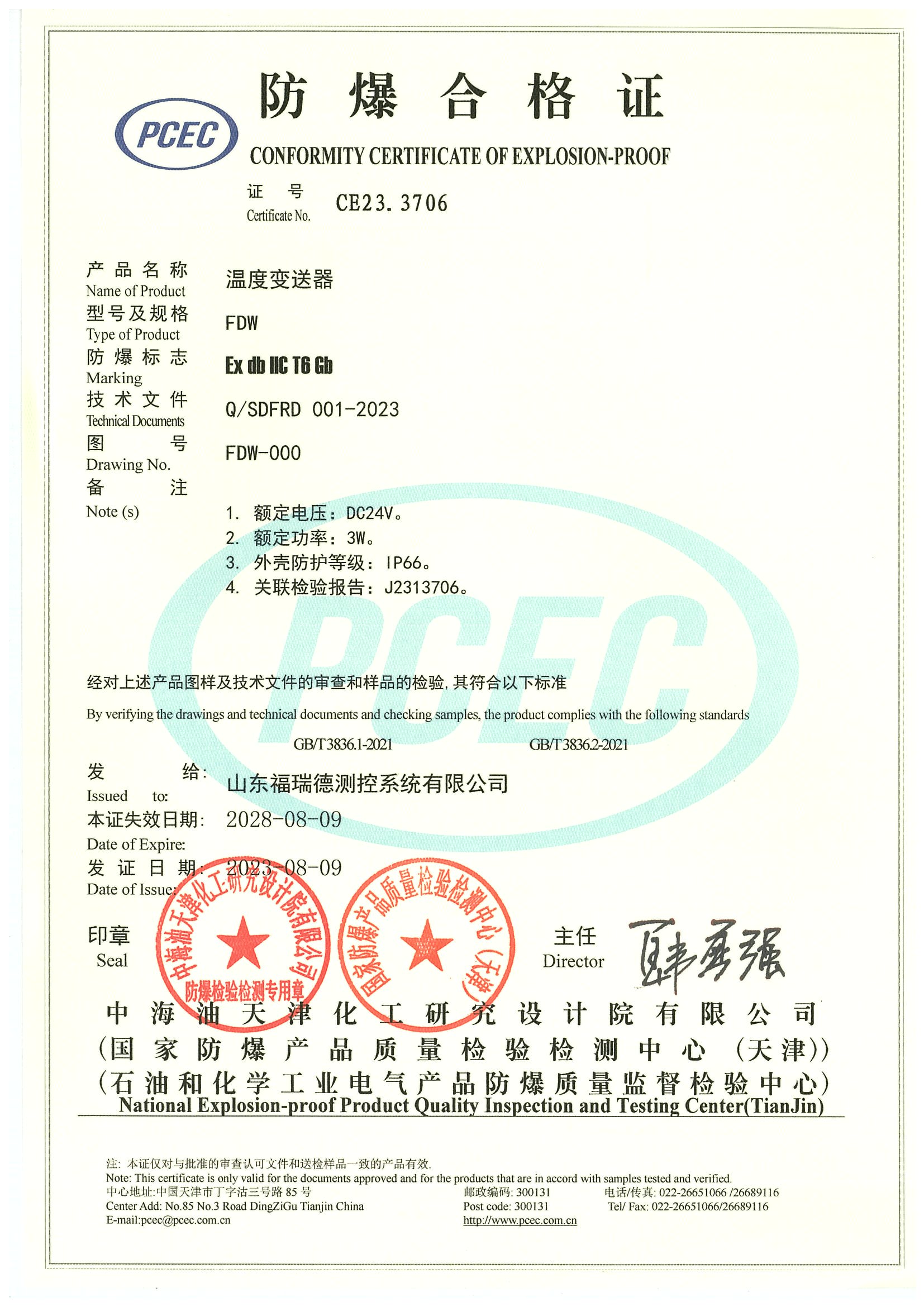 FDW温度防爆证-隔爆